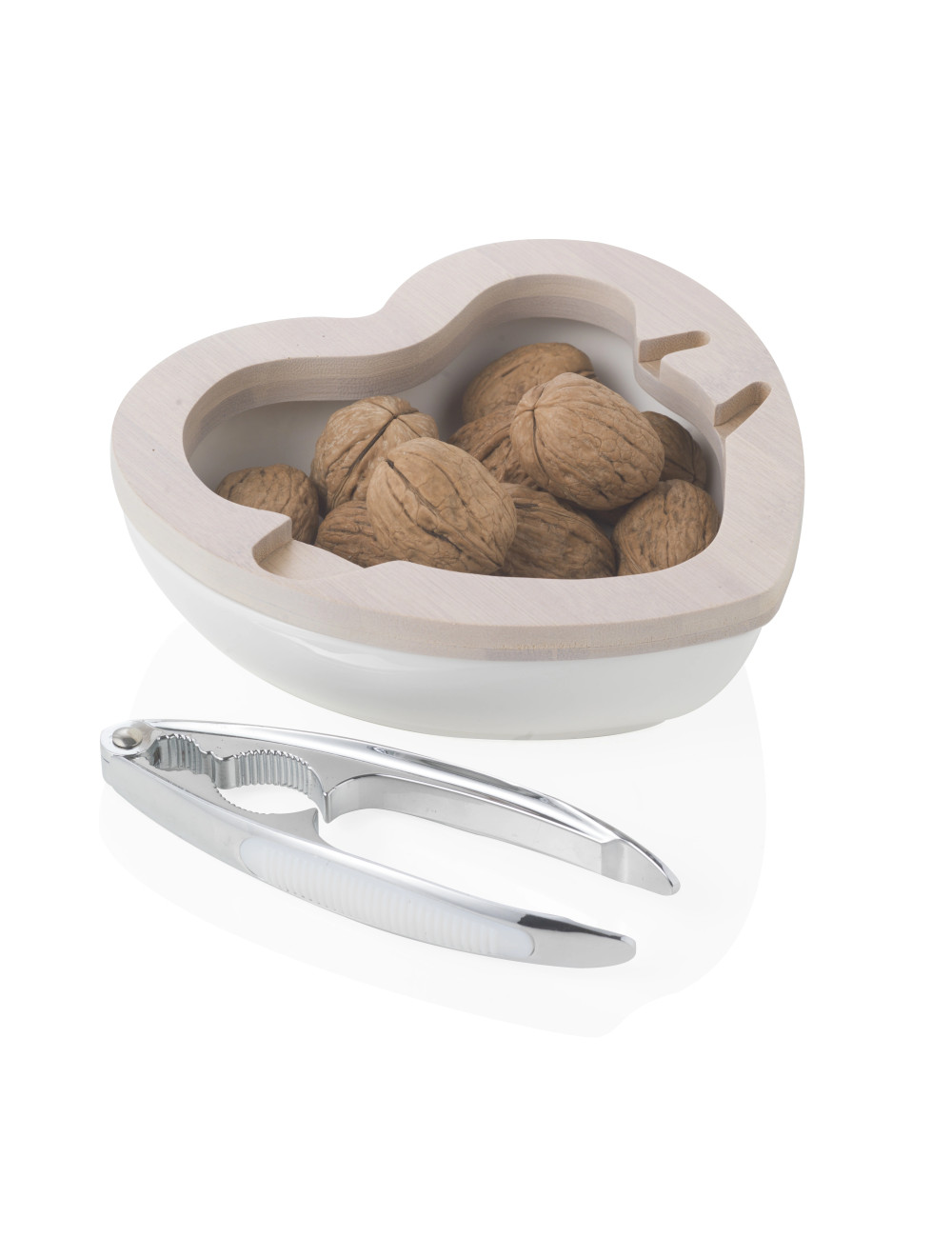 Ciotola portanoci con schiaccianoci cuore in porcellana Brandani
