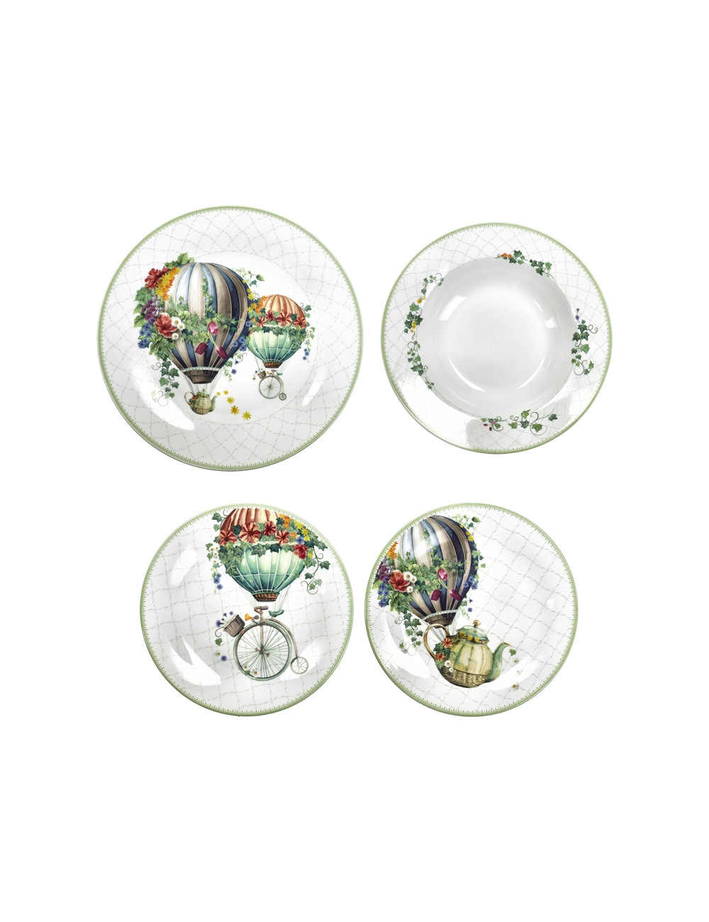 Tavola 18 pezzi Wonderland in porcellana decoro Mongolfiera Brandani cm.d27/22,5/19