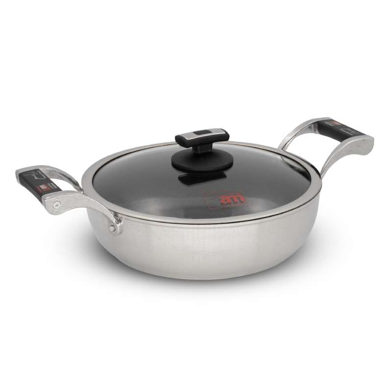 Fondo AM Professional Induction dotato di una speciale piastra in acciaio magnetico particolarmente indicata per le cucine ad induzione e utilizzabile anche su tutte le superfici di cottura: vetroceramica, elettrica, a gas, alogena e radiante.