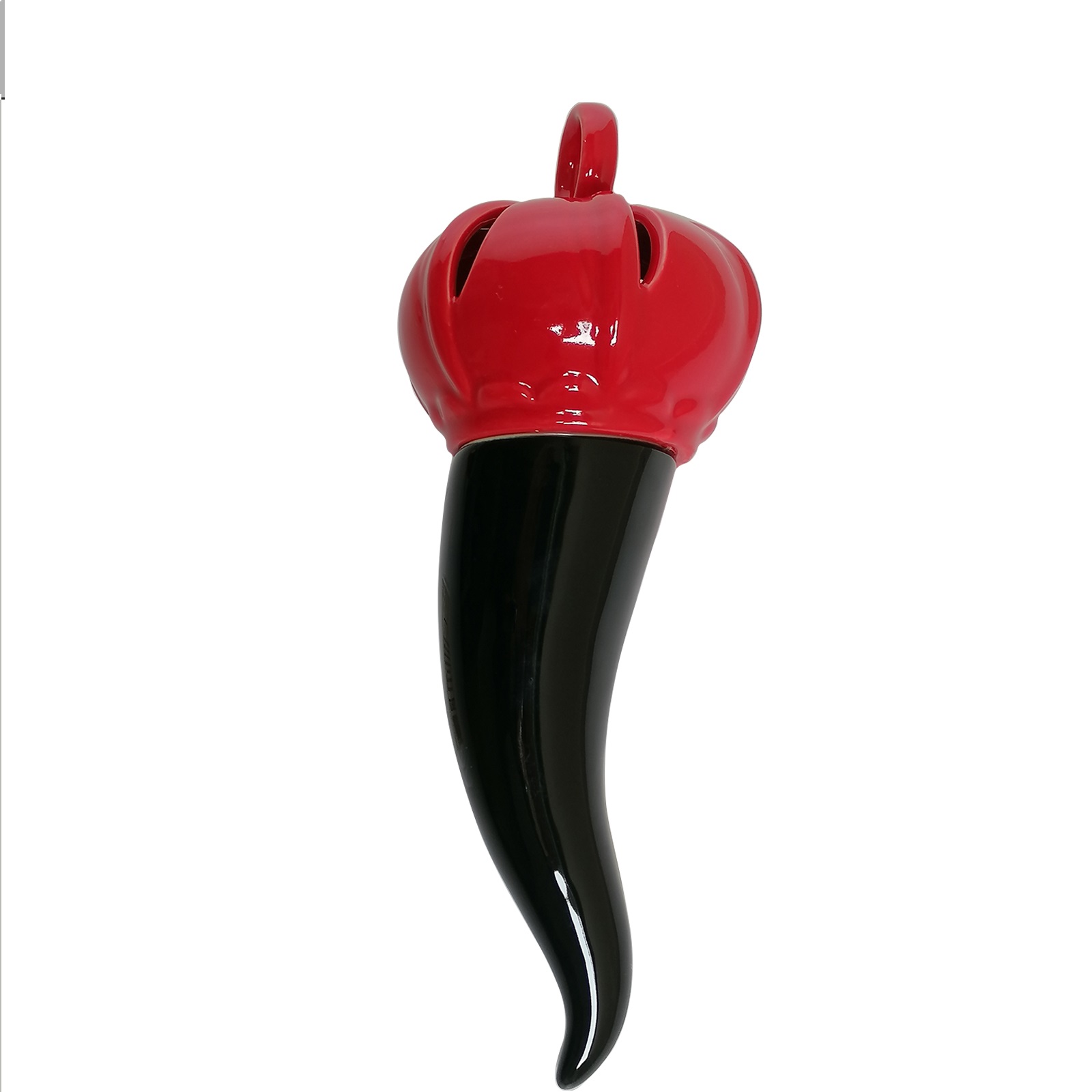 Corno in porcellana rosso e nero cm.24,5