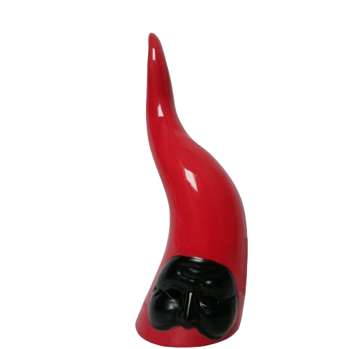 Corno rosso con maschera di pulcinella nera cm. 10x10x24,3